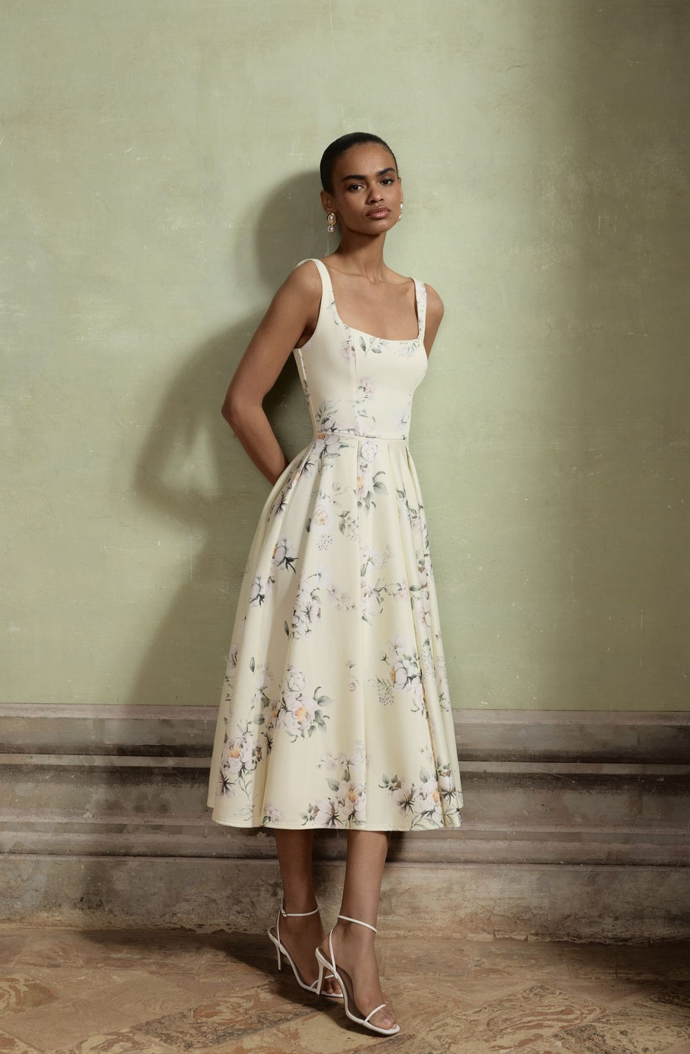 When you discover a statement floral that feels right, it becomes a piece you return to time and again. Whether drawn to oversized blooms or bright budding patterns, keep the rest of the styling refined. A sleek hairstyle, delicate jewellery and simple strappy sandals keep the overall look modern and balanced, allowing the print to stand out without overwhelming.