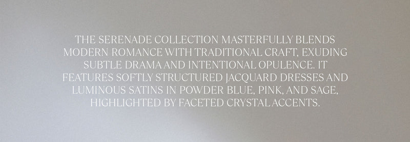 Celebrating subtle drama and intentional opulence, the Serenade Collection is a masterclass in modern romance- an elegant curation of femininity and traditional craft.