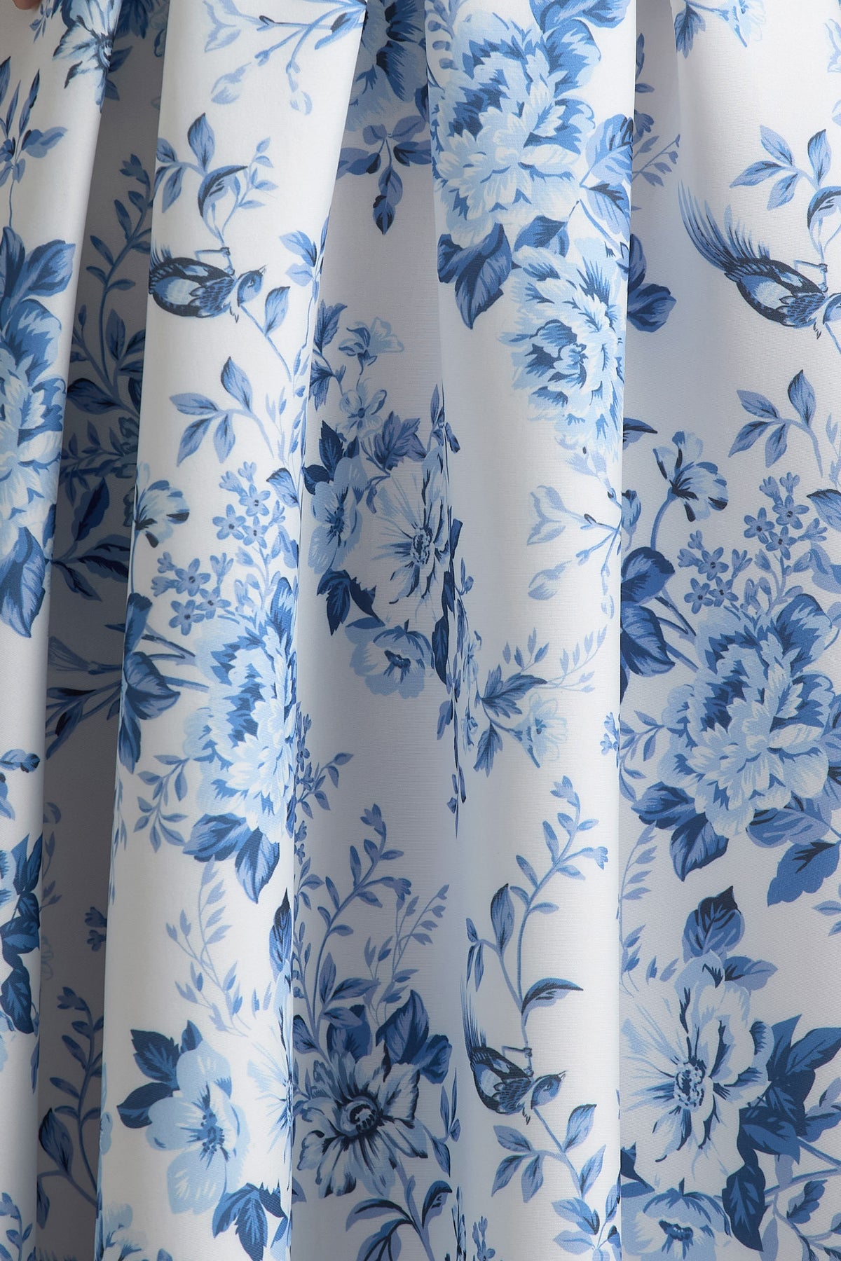 Premium bonded scuba crepe in Blue Porcelain Print (95% Polyester, 5% Elastane)