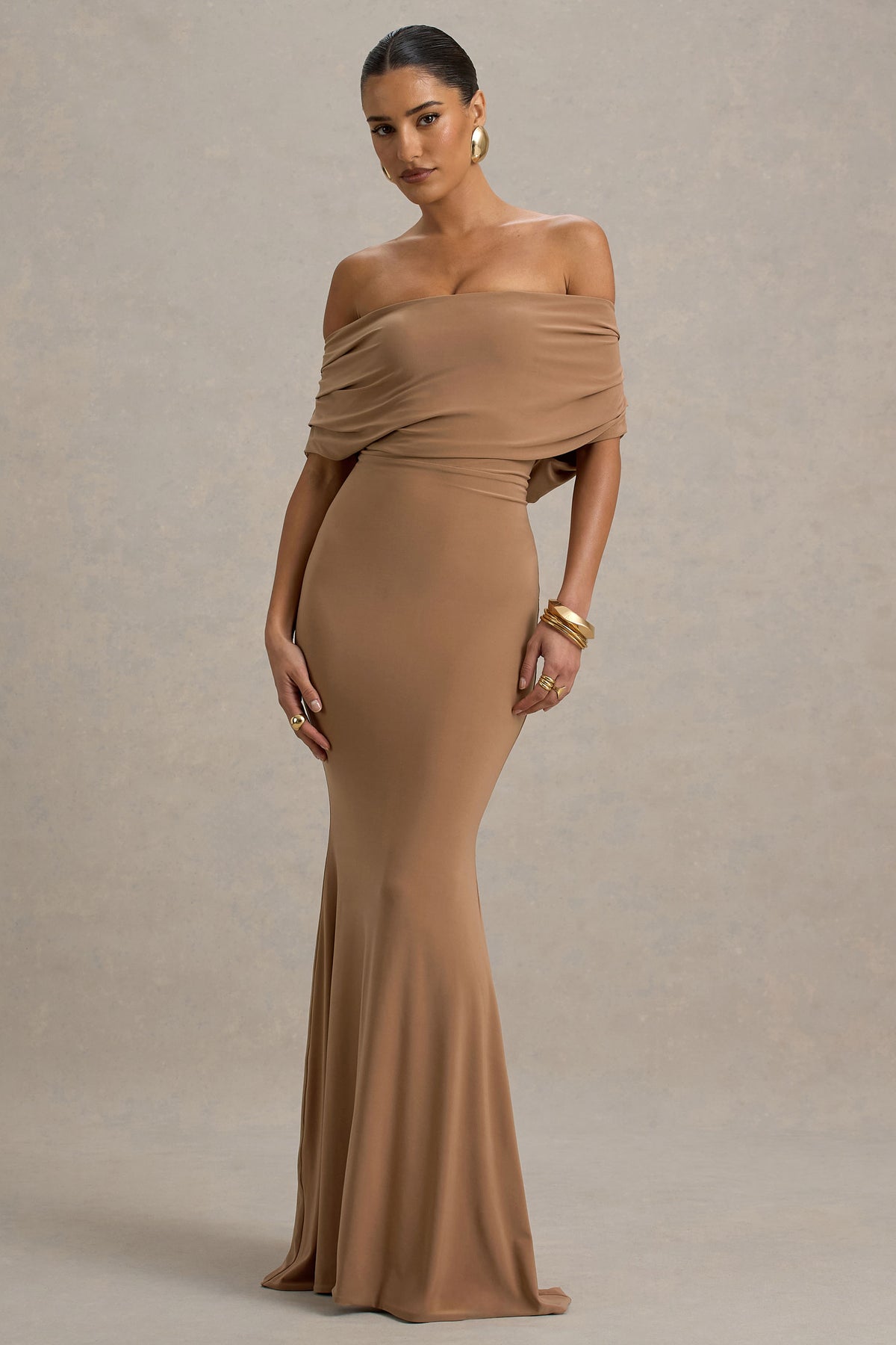 If you're looking for your new go-to weekend style, then look no further than Bowden. Crafted from a premium mocha stretch jersey, this maxi dress is the perfect choice for every occasion with its comfortably chic look. Pair the outfit with sparkling stilettos and a sleek up-do for the ultimate finish.