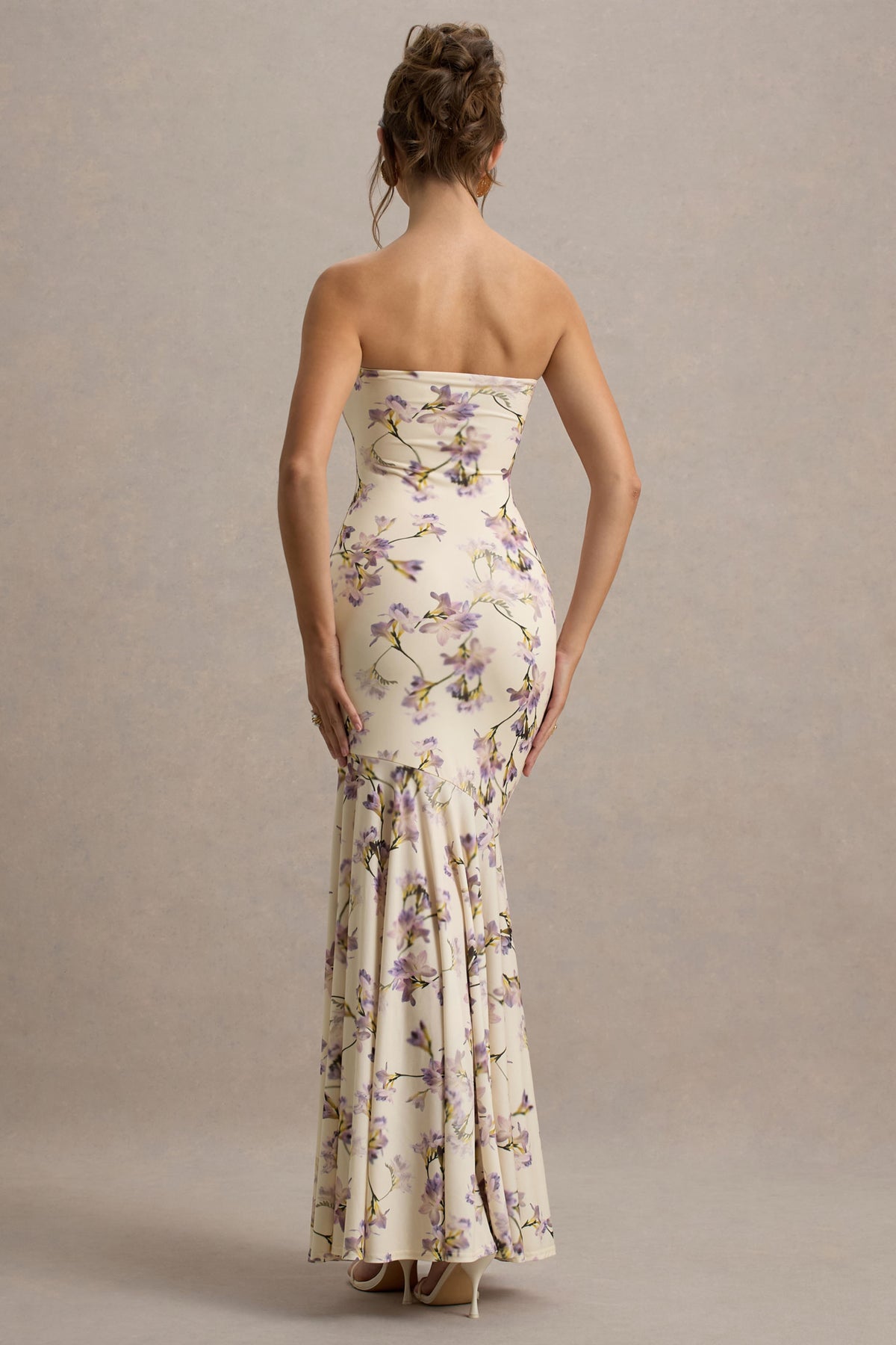 Turn heads in our Callie maxi. Designed to sculpt and flatter, this show-stopping gown is cut in our premium stretch crepe. Adorned in a delicate lemon floral print, which brings a soft, romantic touch to the statement silhouette. The structured bandeau neckline paired with the asymmetric fishtail hem, creates effortless movement with every step. A must have for VIP moments this season.