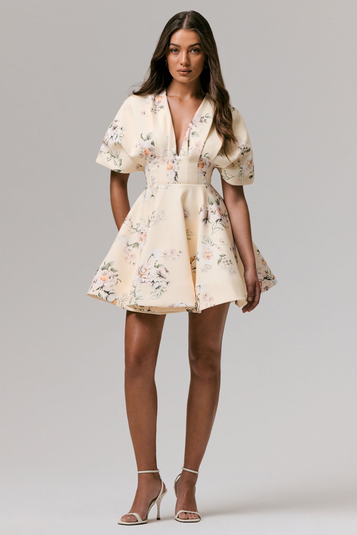 Step into the sunshine with Delight, your ultimate summer statement dress. Crafted in our premium crepe in a delicate lemon print, this mini is all about flirty elegance. Featuring a plunging neckline and voluminous sleeves, this dress is designed to turn heads. The self-tie back detail adds a romantic finish while the playful pleated, skater skirt moves beautifully with every move. Delight is the definition of effortless glam. Perfect for garden parties, bridal brunches, or any moment that calls for something unforgettable.