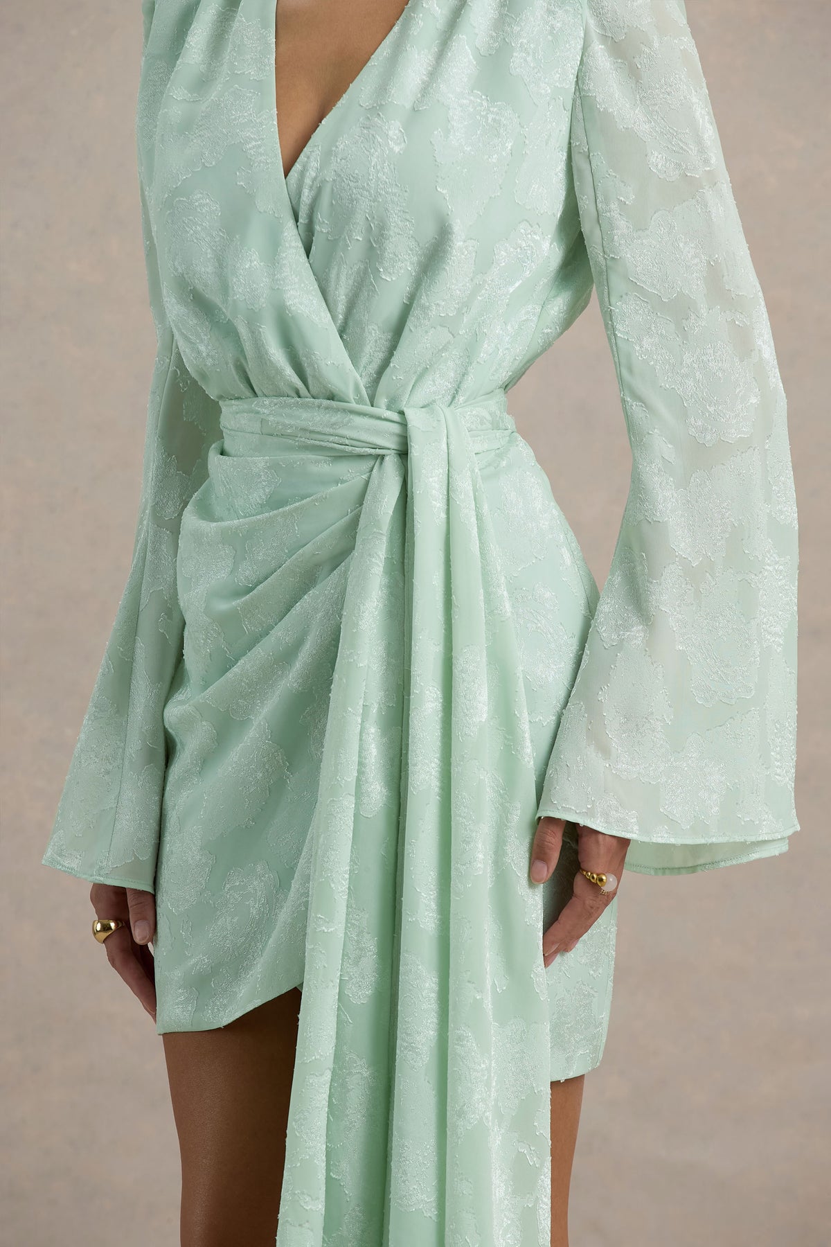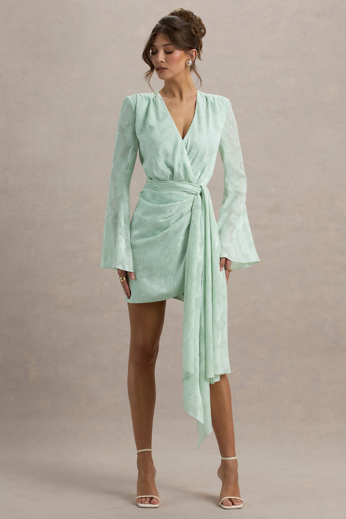 Look poised and chic in the mini of the season Doreen. Cut in our premium burnout material in a crisp shade of mint, this will be your go to mini this season. The functional wrap creates a cinched in effect, ensuring you are flattered from all angles. The plunge neckline and sash detail add a daring yet elegant twist to elevate this piece. Style with silver jewellery, for a look that won't be forgotten.