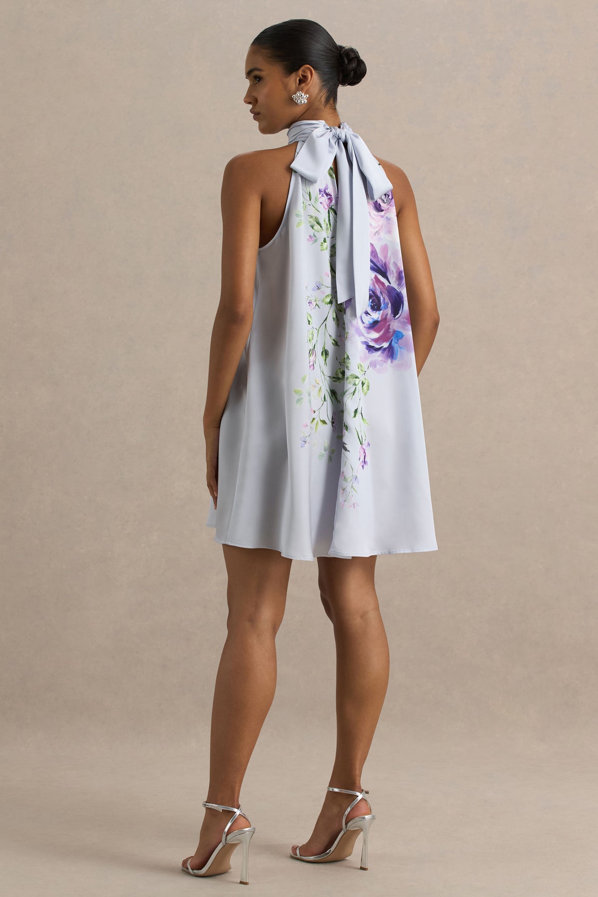 Make a vibrant entrance in Evita, a statement mini dress designed to flatter and captivate. Cut from premium stretch satin in a bold powder blue, this style features a sleek high neckline with a self-tie halter detail for an elegant twist. Its curve-skimming fit and playful length strike the perfect balance between sophistication and flirtation. Style all season long for rooftop cocktails, date nights, or destination evenings.