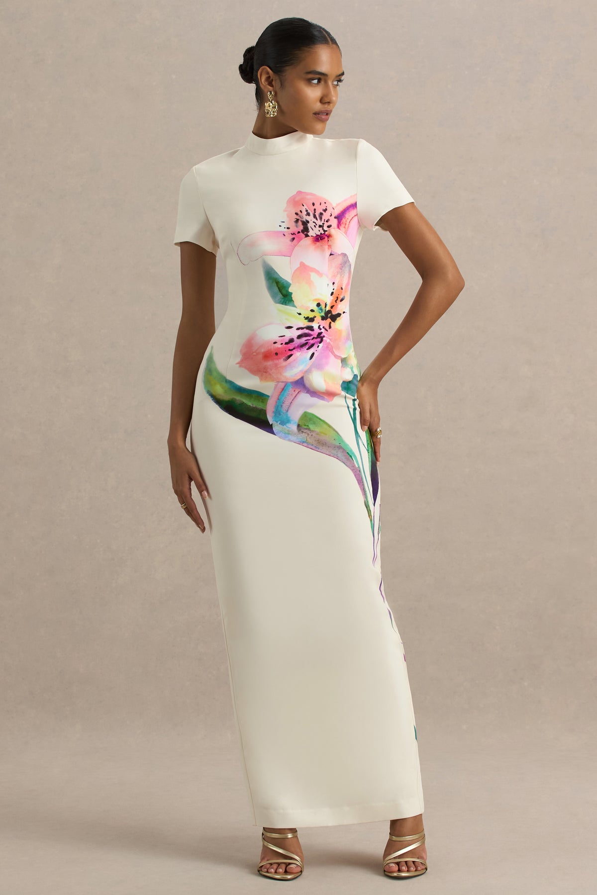 Timeless elegance with a fresh, feminine twist, Hessie is designed to make a subtle yet striking statement. Cut from our premium crepe in a delicate white lily print, this maxi dress combines soft florals with a clean, tailored silhouette that flatters from every angle. The high neckline and short sleeves offer a modest, refined silhouette that is balanced with a centre-back split for a touch of allure. Understated yet unforgettable, Hessie is perfect for garden parties or any moment that calls for quiet sophistication.
