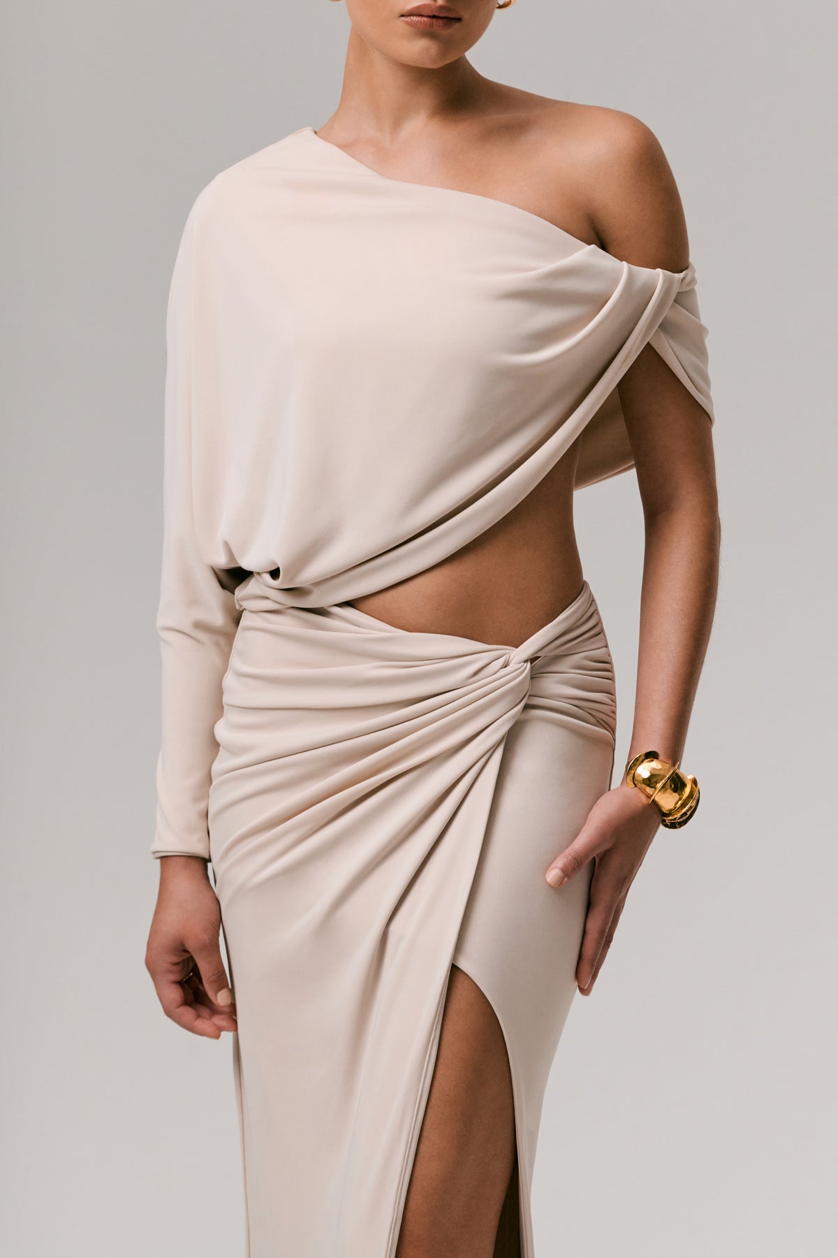 Look effortlessly chic this season in our Marlena maxi skirt. Crafted in our premium solton, this stone hued piece is the perfect statement maker for your next dressed up moment. Featuring a twist waist detail that enhances your silhouette and cinches your waist, as well as a daring front high split for a sultry edge. From beachside cocktails to girls nights out, Marlena will be your go too.