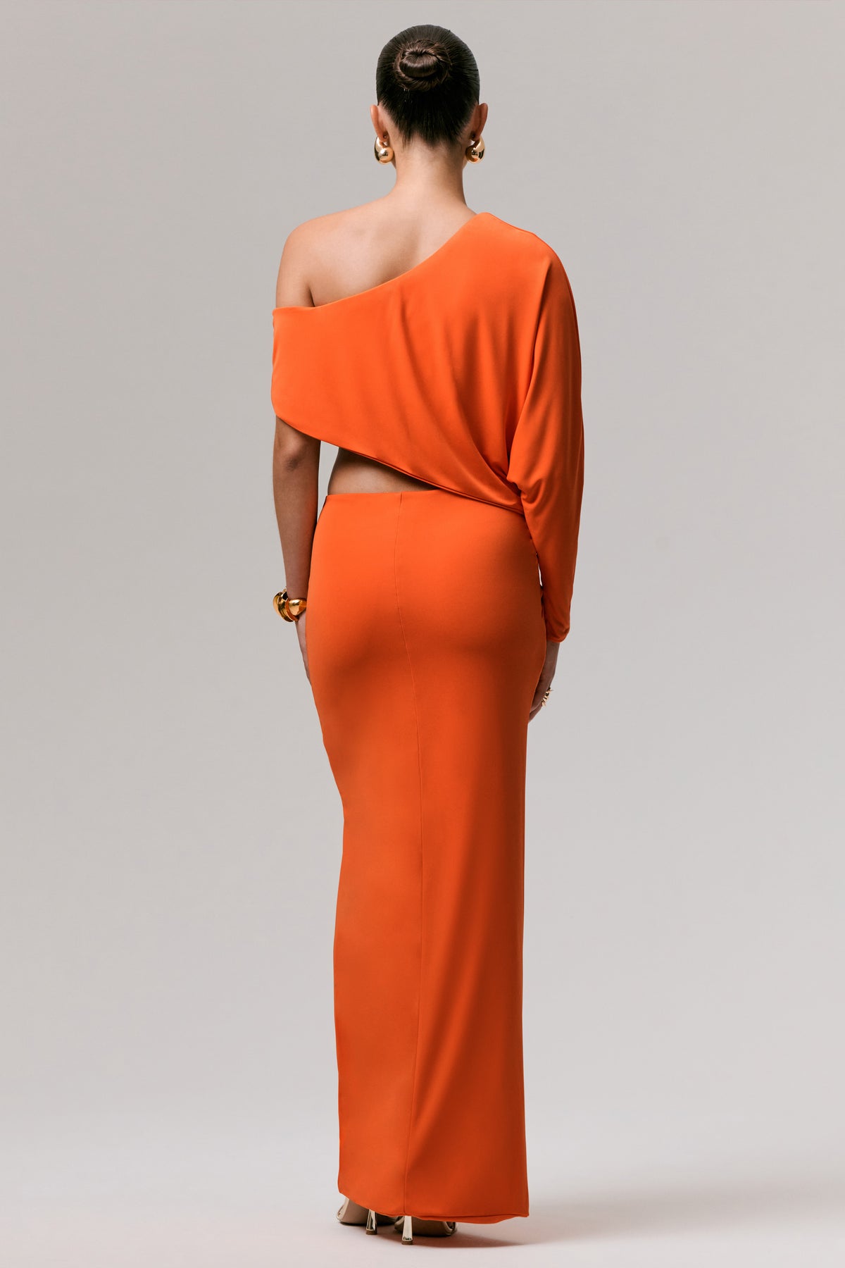 Look effortlessly chic this season in our Marlena maxi skirt. Crafted in our premium solton, this bold orange hued piece is the perfect statement maker for your next dressed up moment. Featuring a twist waist detail that enhances your silhouette and cinches your waist, as well as a daring front high split for a sultry edge. From beachside cocktails to girls nights out, Marlena will be your go too.