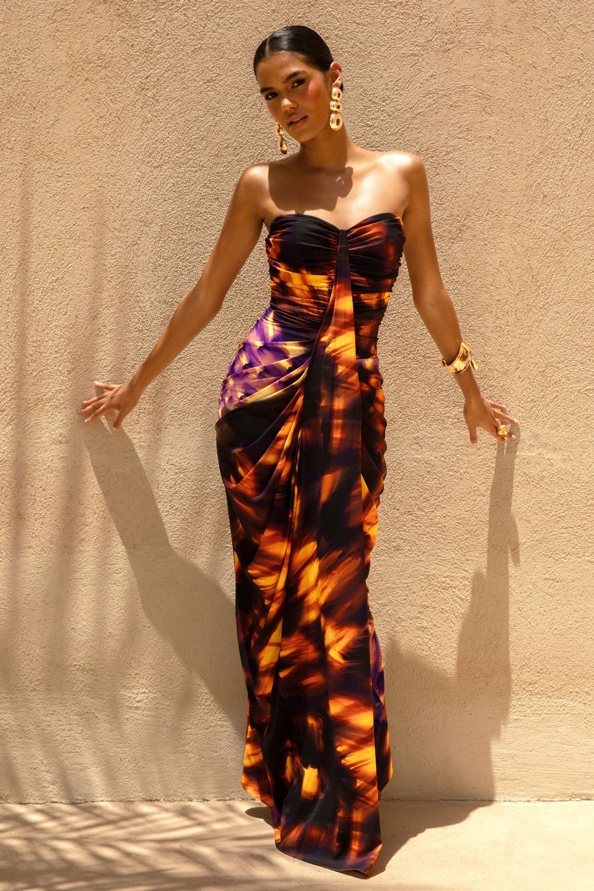 Make a bold statement in Nyra, a breathtaking piece for your next special occasion. Crafted in our premium woven, in a striking smoke print, this maxi dress enhances your figure from all angles. Featuring a feminine sweetheart neckline that elegantly highlights your decolletage, and a front sash detail for a modern edge. Finished with expertly placed gathering to flatter your silhouette, in Nyra you are set for unforgettable moments.