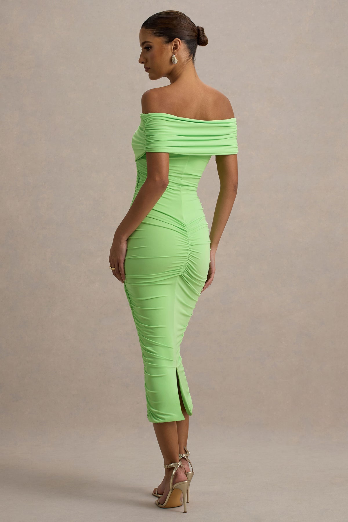 Have yourself feeling like a gift in Unwrapped, our light green midi dress. With a fully ruched body to flatter your figure and accentuate those curves, this piece is finished with a classic bardot neckline. Try pairing Unwrapped with a sleek bun and strappy stilettos to showcase all it has to offer.